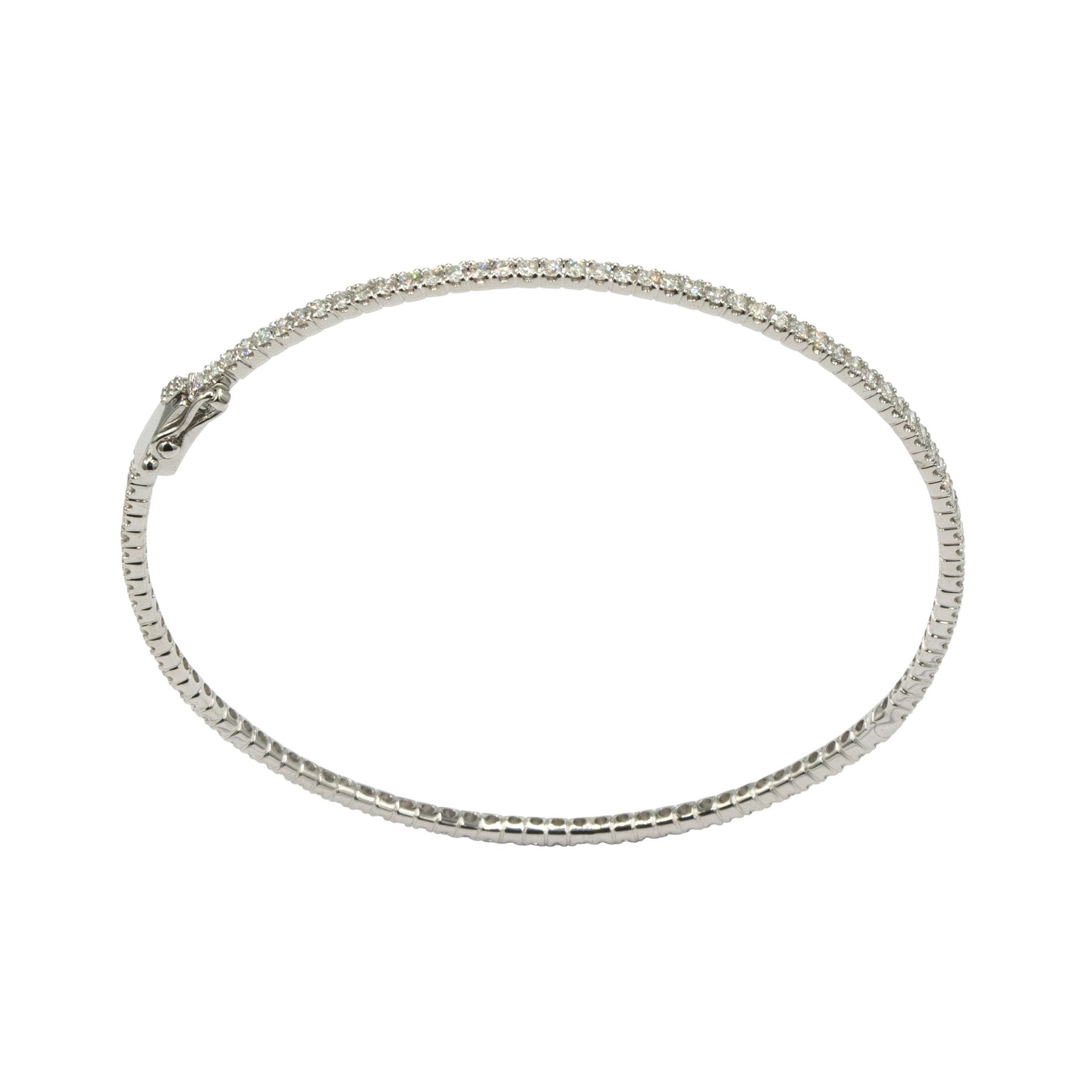 આ કાલાતીત ક્લાસિક ડાયમંડ બંગડીમાં ચમકતા ગોળાકાર હીરાની સતત લાઇન છે, દરેક સેટ મહત્તમ તેજસ્વીતા માટે આકર્ષક ચાર-ખૂણાવાળા સેટિંગમાં છે. પોલિશ્ડ સોનાની ધાતુમાં રચાયેલ. બંગડીની બંગડી એક સુરક્ષિત ક્લેપ અને એક સરળ, લવચીક ડિઝાઇન પ્રદાન કરે છે જે કાંડાને સુંદર રીતે રૂપરેખા આપે છે. રોજિંદા વૈભવી અને ખાસ પ્રસંગો બંને માટે આદર્શ, આ ટુકડો શુદ્ધ સુસંસ્કૃતતા અને કાયમી ચમક દર્શાવે છે, જે તેને કોઈપણ સુંદર દાગીનાના સંગ્રહમાં એક સંપૂર્ણ ઉમેરો બનાવે છે.