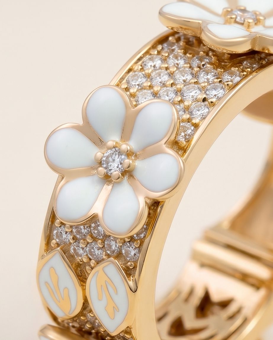 Inspired by the graceful beauty of the magnolia flower, this earring captures a bloom in perfect form. Soft white petals unfold in delicate layers, framed by warm gold metal and crowned with a sparkling diamond at its heart. The Magnolia Bloom Earring is a symbol of purity, elegance, and timeless natural beauty